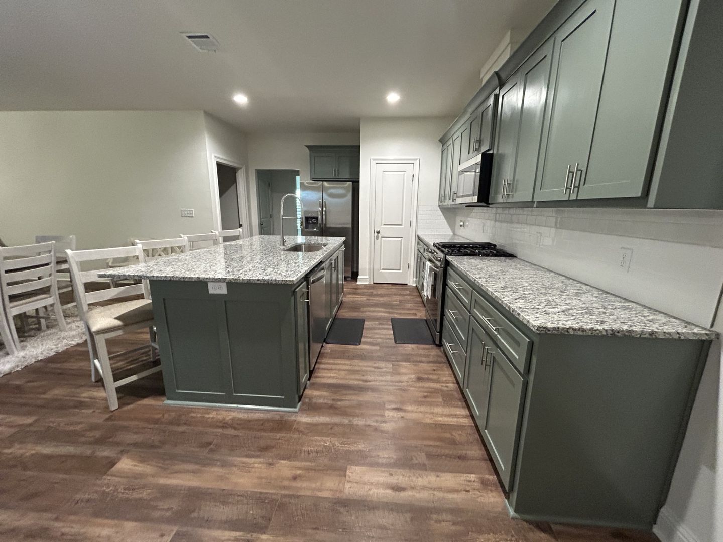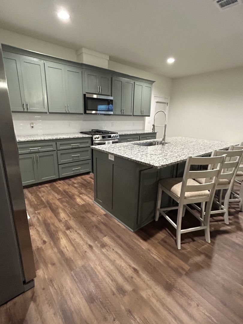 This 4BR/2BA home offers an oversized island at the centerpiece of the kitchen and features custom cabinetry, granite countertops, gas range, and corner pantry. Luxury vinyl plank with no carpet or tile. All bedrooms are sizeable with beautiful master suite. Home sits on the the neighborhood lake offering amazing lake front views from the backyard.